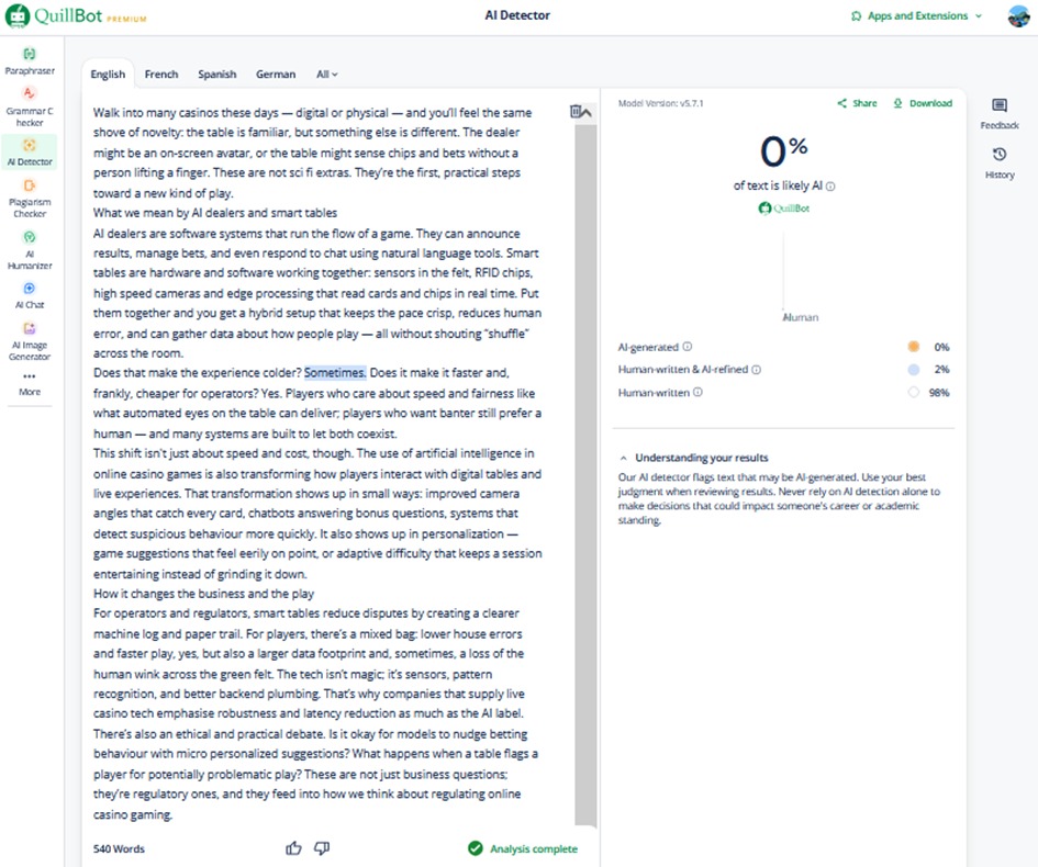 If you’ve played on a smart table or chatted with an AI dealer, tell us: did it feel like an upgrade, or did it miss the soul of the game? Drop a comment below, share your opinion, and let’s talk about what should stay human — and what we’re happy to let the machines handle.