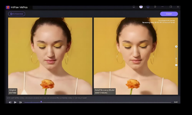 HitPaw VikPea uses deep-learning technology to recognize scenes, faces and motion. The AI adjusts the sharpness, color and lighting of the damaged videos. The tool removes the blur and restores natural colors.
