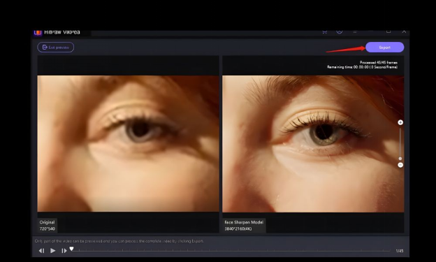 When the video looks right, click “Export.” The output video is clean, stable. HitPaw VikPea brings every frame back to life.